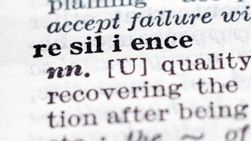 Dictionary close-up of the word "resilience," with pronunciation and part of speech.