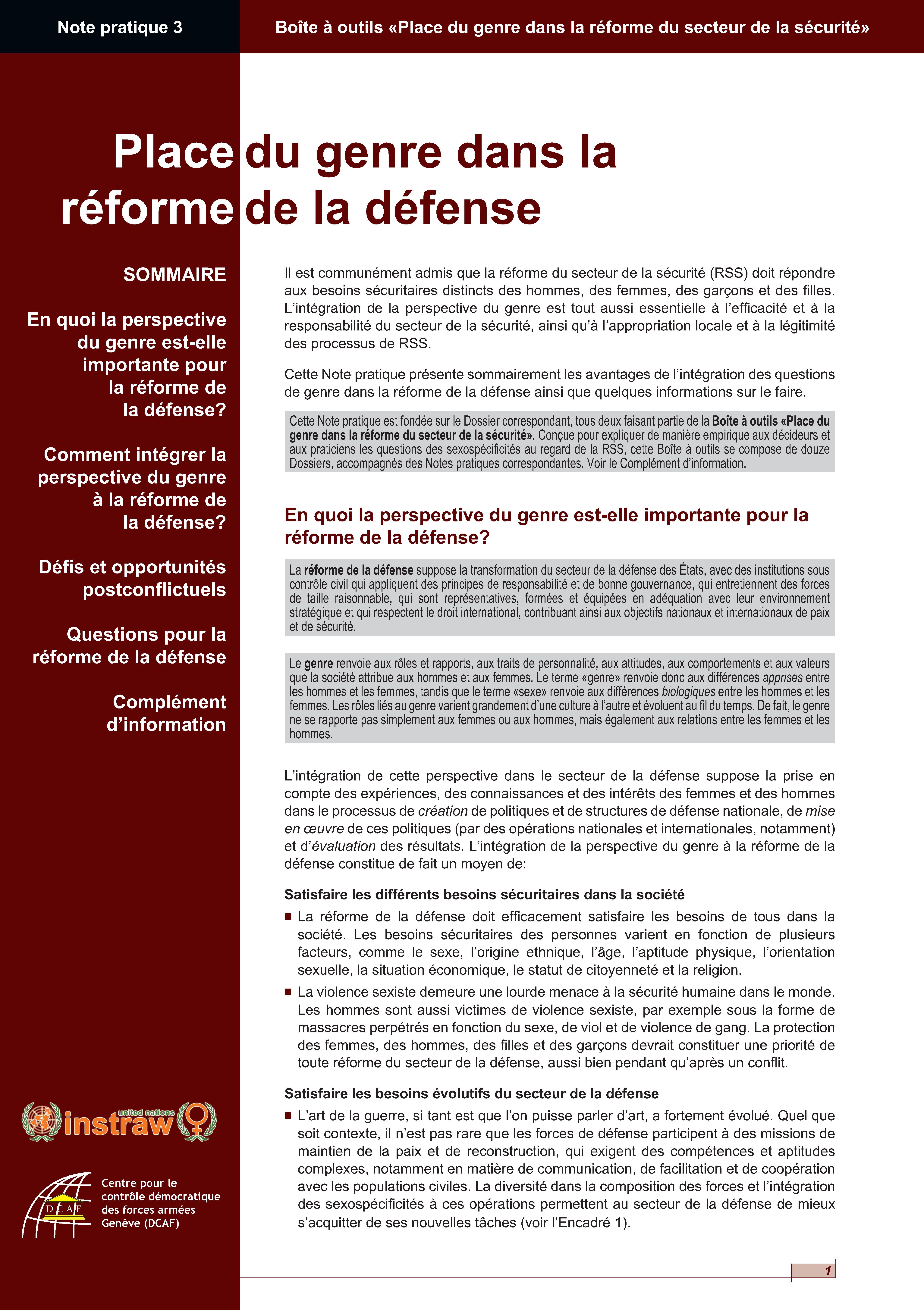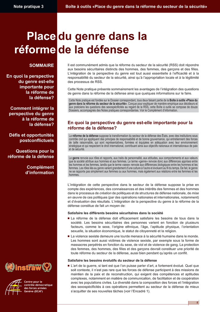 French translation of the Gender and Security Sector Reform Toolkit - Practice Note 3
