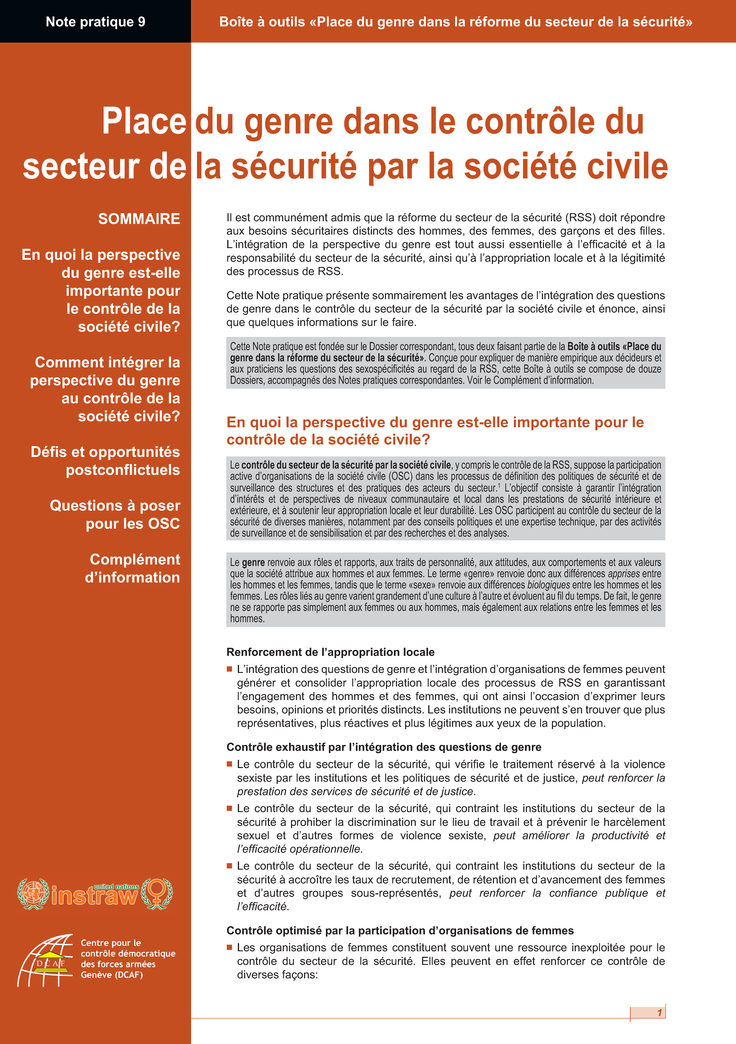 French translation of the Gender and Security Sector Reform Toolkit - Practice Note 9
