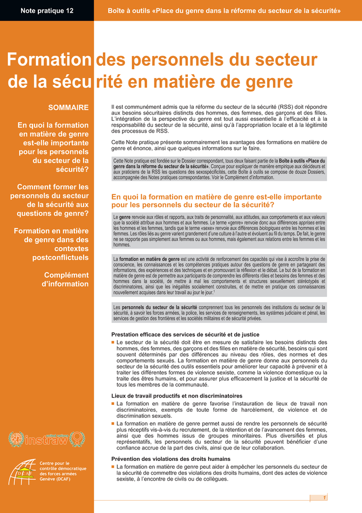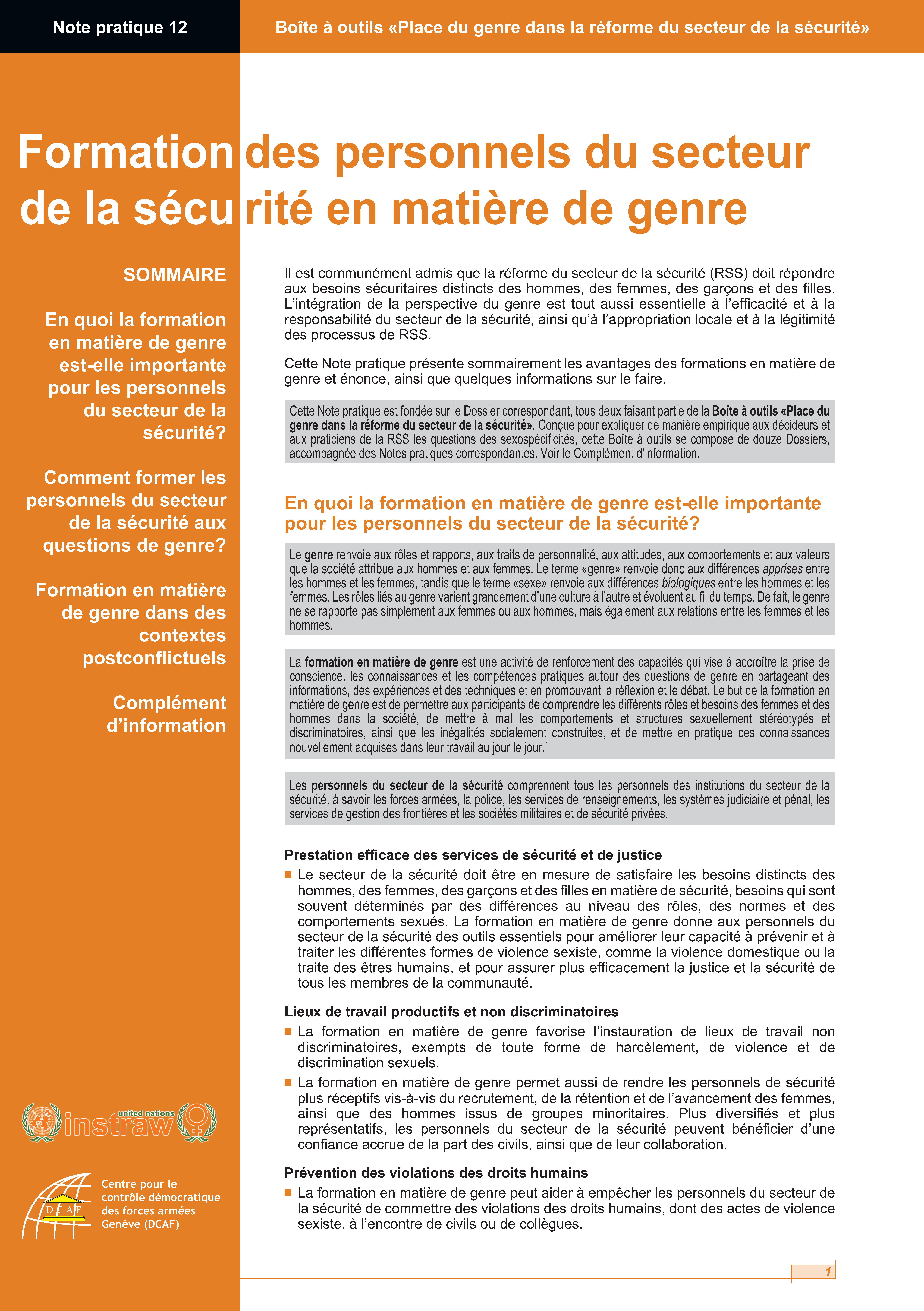 French translation of Gender and Security Sector Reform Toolkit - Practice Note 12