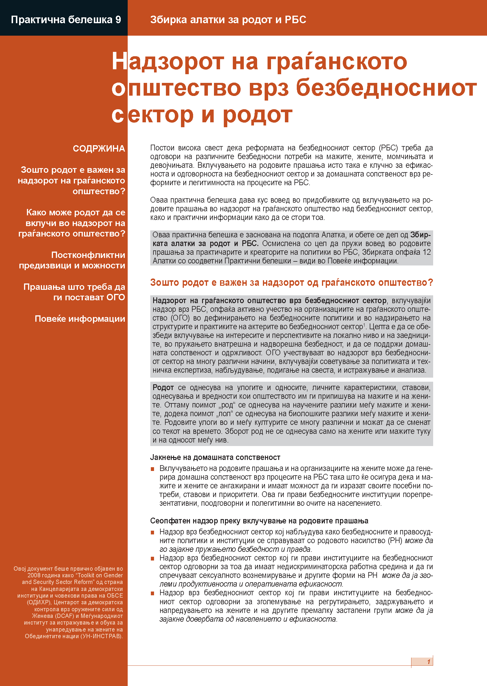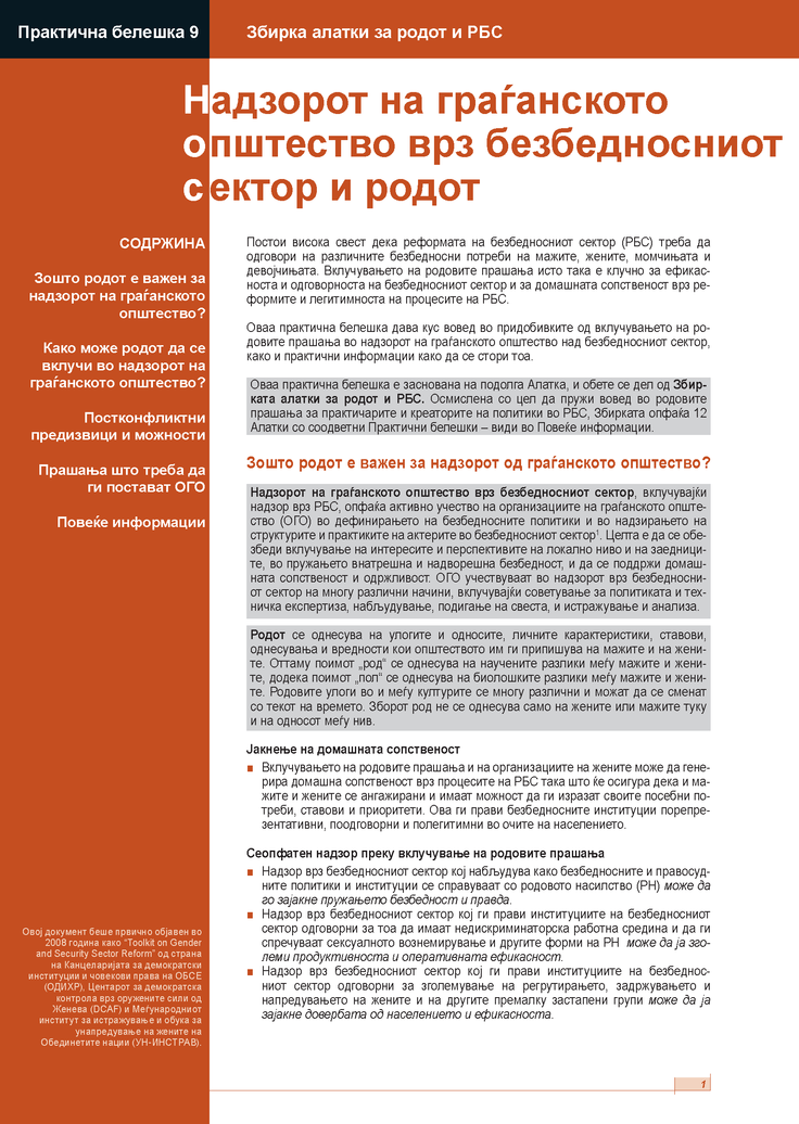Macedonian translation of the Gender and Security Sector Reform Toolkit - Practice Note 9