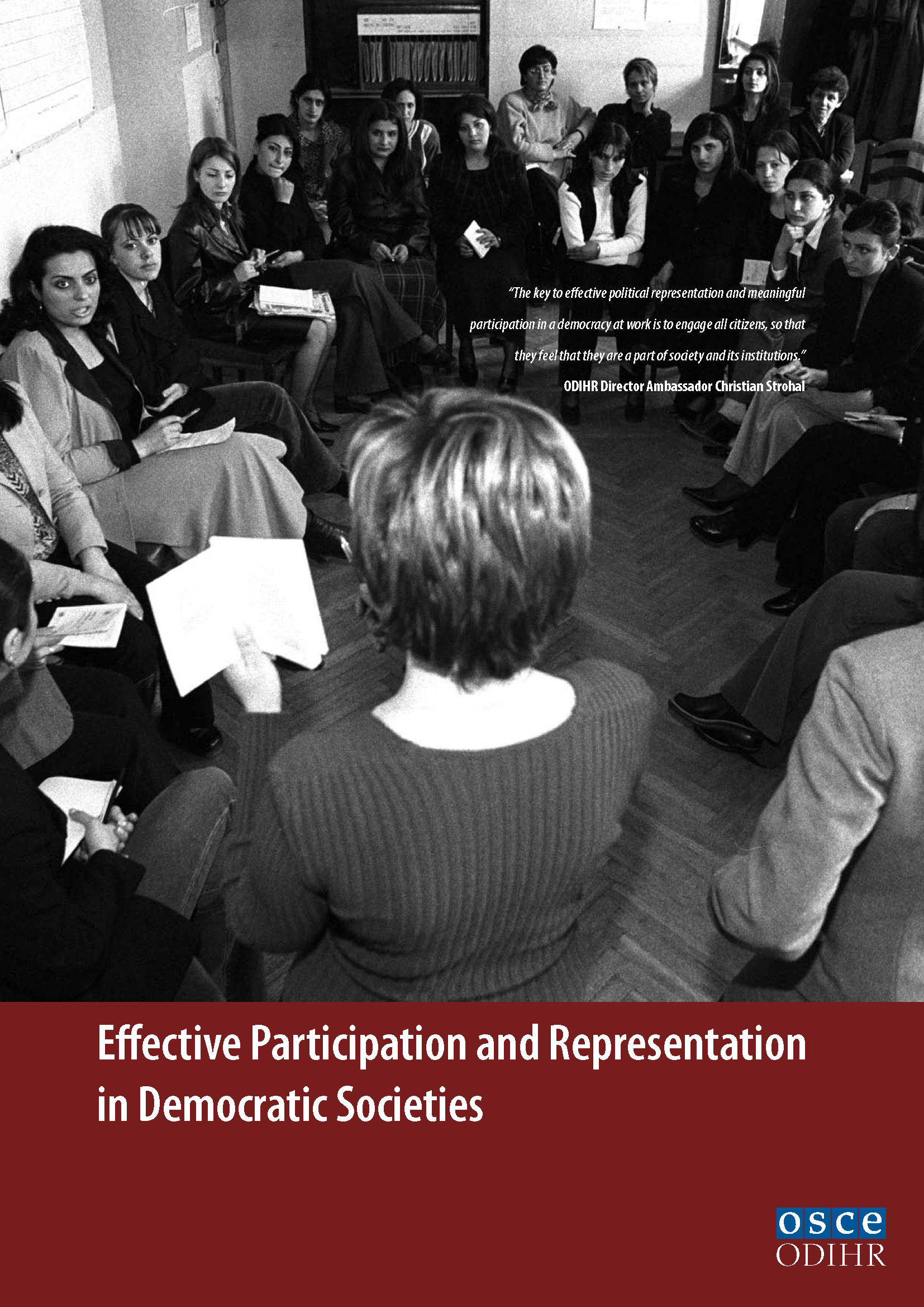 Front cover of an ODIHR brochure on Effective Participation and Representation in Democratic Societies