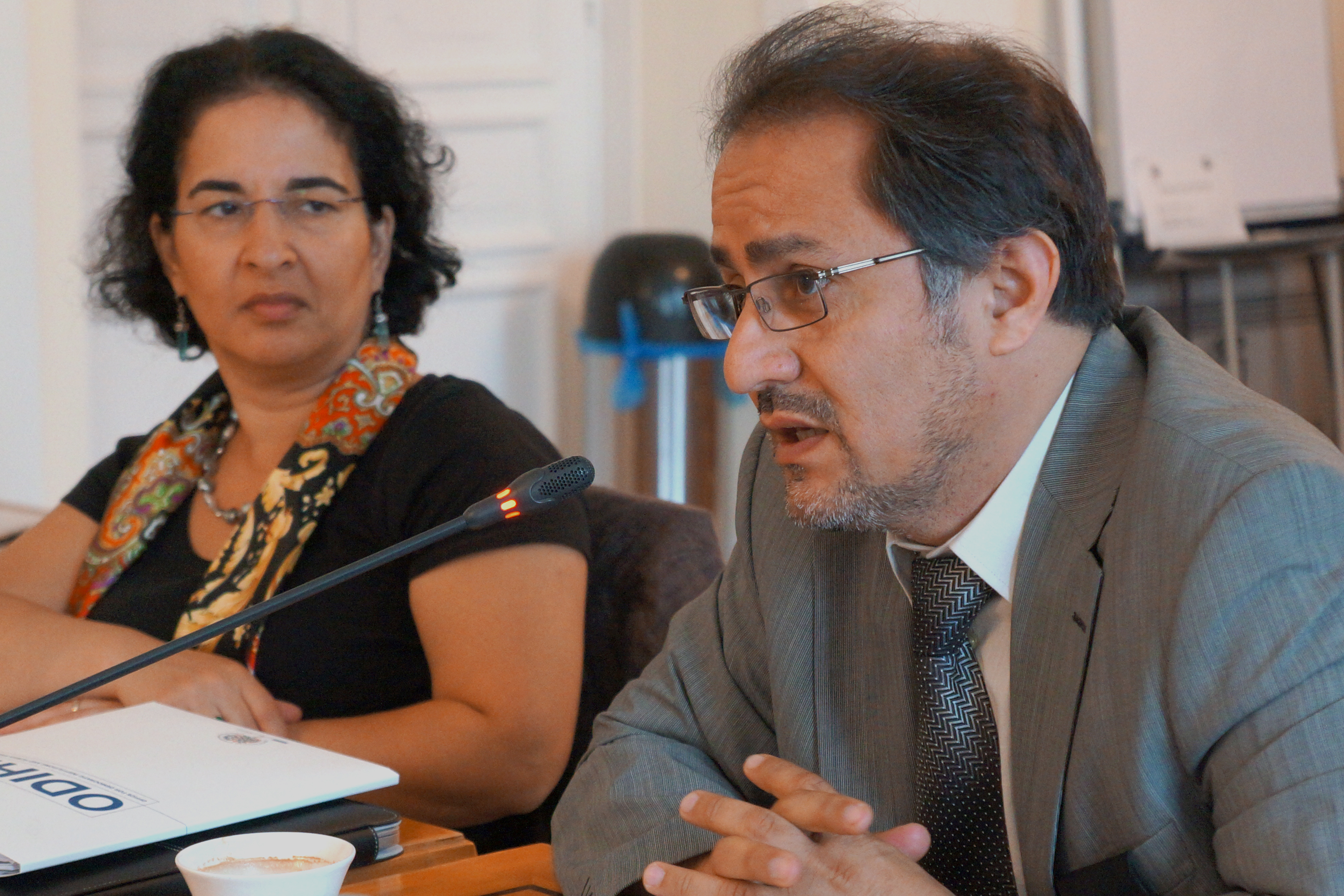 Bülent Şenay (r) and Nazila Ghanea, new members of the OSCE/ODIHR Advisory Panel of Experts on Freedom of Religion, discuss the Panel’s role in providing assistance to OSCE participating Sates in meeting their commitments on this fundamental freedom, Warsaw, 18 June 2013.