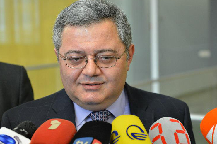 In this file photo, David Usupashvili, Chairman of the Parliament of Georgia, answers journalists’ questions at a news conference in Tbilisi.