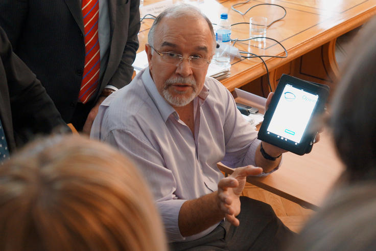 Frank Richardson, Chief executive of the Open Trial NGO, presents a new smartphone and tablet app designed to assist trial monitors. The app was presented to participants of ODIHR’s annual trial monitoring meeting, Warsaw, 8 October 2013.