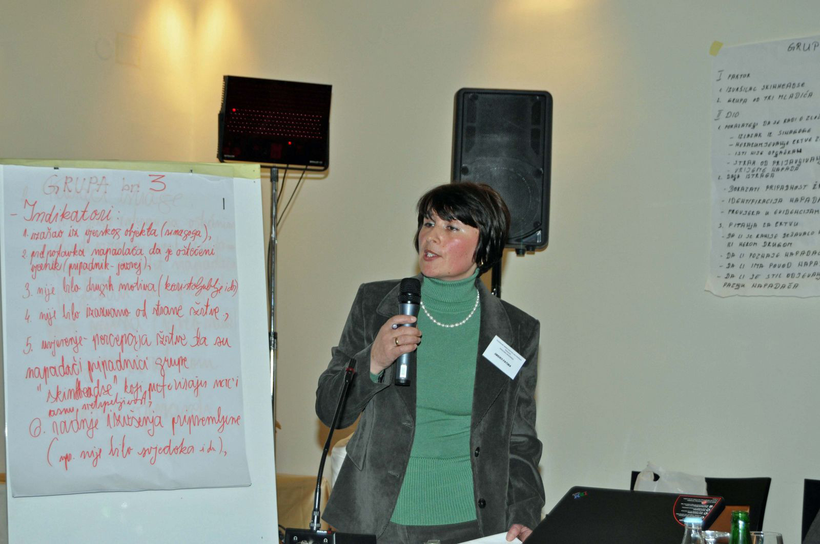 A participant in a law enforcement training session presenting results from a working group exercise, Sarajevo, Bosnia and Herzegovina, 24 March 2009.