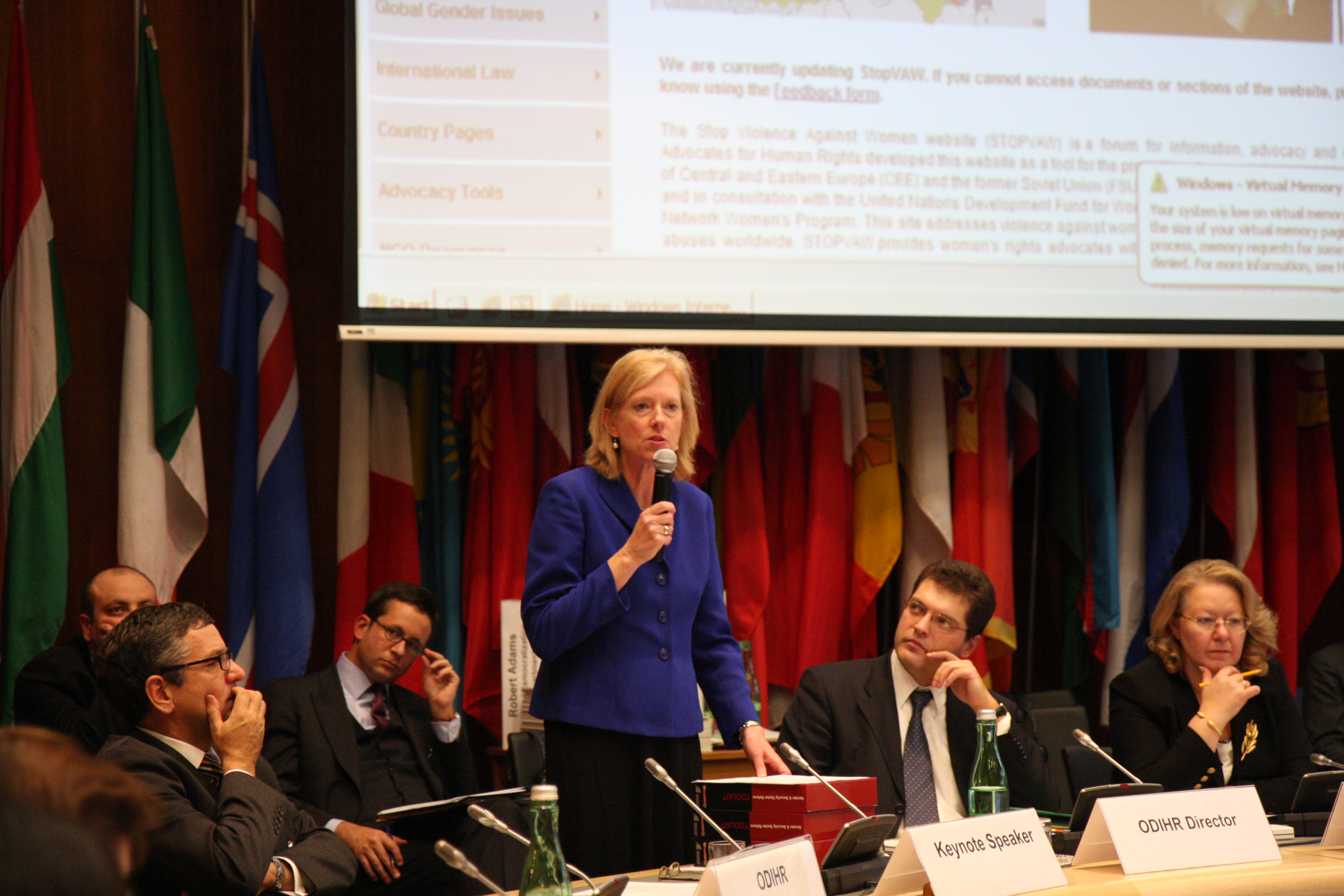 for Human Rights, USA delivering the keynote address at a meeting on combating violence against women, Vienna, 5 November 2009.