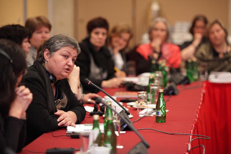 Gavkhar Dzhuraeva of the Tajikistan Foundation, an NGO based in Moscow, speaking at a side event on "Compensation of trafficked persons: Law and practice in the OSCE region", Human Dimension Implementation Meeting, Warsaw, 1 October 2009.