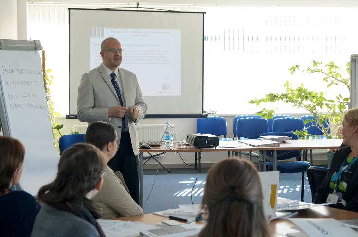 Juris Gromovs, Migration/Freedom of Movement Advisor at ODIHR's Democratization Department, at the regional workshop roundtable on gender-sensitive approaches to labour migration in the Baltic States, 15 May 2014, Riga