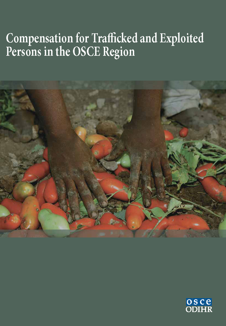 Front cover of the ODIHR handbook "Compensation for Trafficked and Exploited Persons in the OSCE Region"