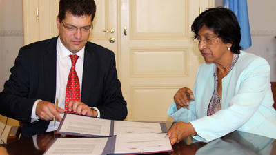 GENEVA, 12 June 2014 – Ambassador Janez Lenarčič, Director of the OSCE Office for Democratic Institutions and Human Rights (ODIHR), and Navi Pillay, the United Nations High Commissioner for Human Rights, agreed to enhance co-operation between their institutions in a joint declaration signed in Geneva today.