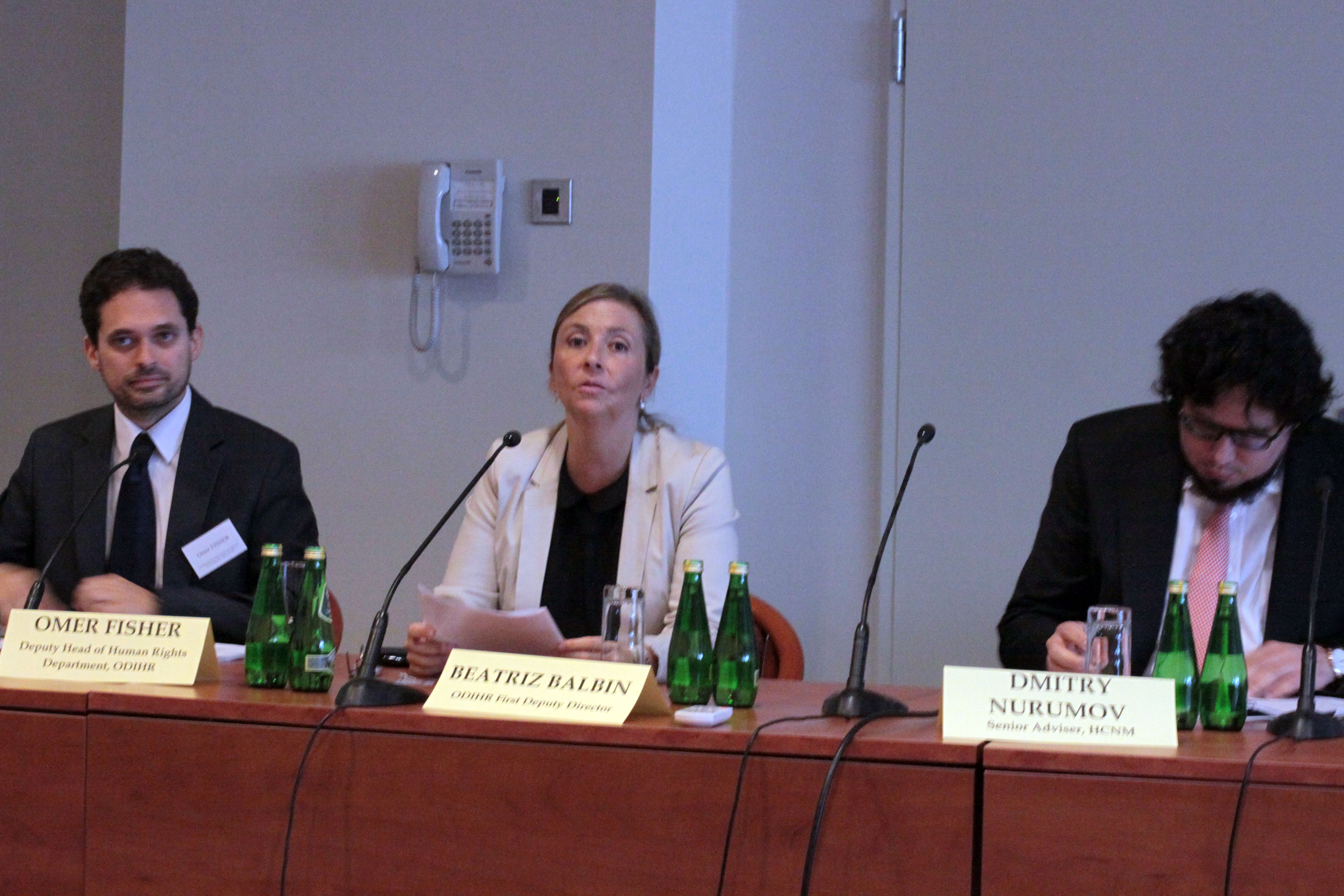 Beatriz Balbin, First Deputy Director of ODIHR, making opening remarks at meeting with civil society organizations from Ukraine, in Warsaw, 18 September 2014