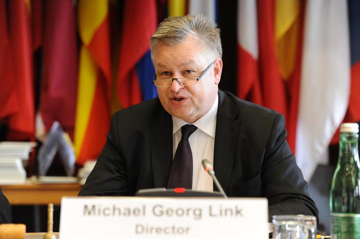 Michael Georg Link, Director of the OSCE Office for Democratic Institutions and Human Rights (ODIHR), speaking in Vienna, 18 May 2015. (OSCE/Micky Kröll)