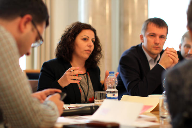 Iris Petrela, National Legal Officer from OSCE Presence to Albania (l), and Vitaliy Razik, Director of Ukraine's Law and Democracy Foundation (r) at OSCE/ODIHR's annual trial-monitoring meeting in Warsaw, 29 June 2015