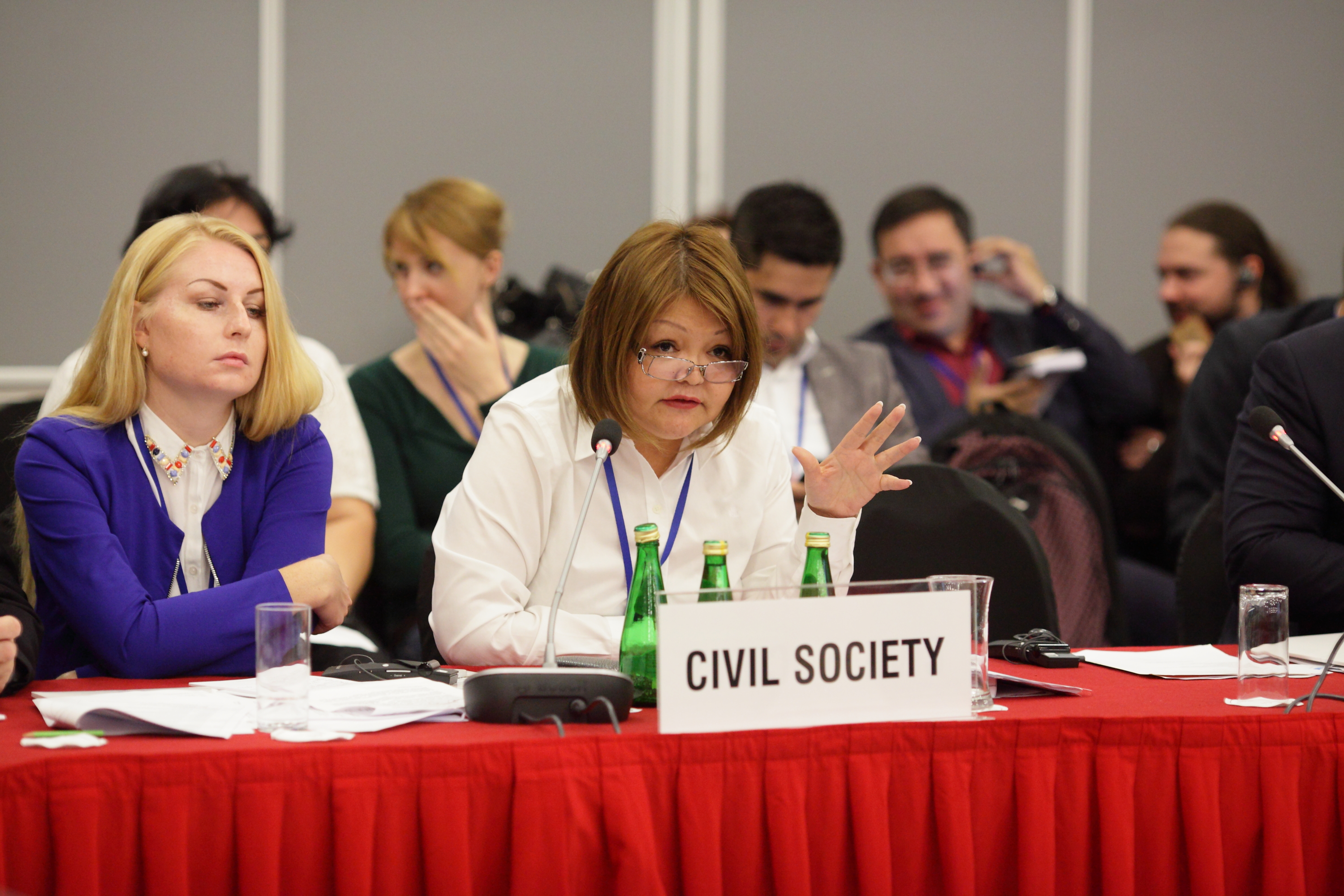 Member of civil society speaking during session on rule of law, at the Human Dimension Implementation Meeting in Warsaw, 25 September 2015