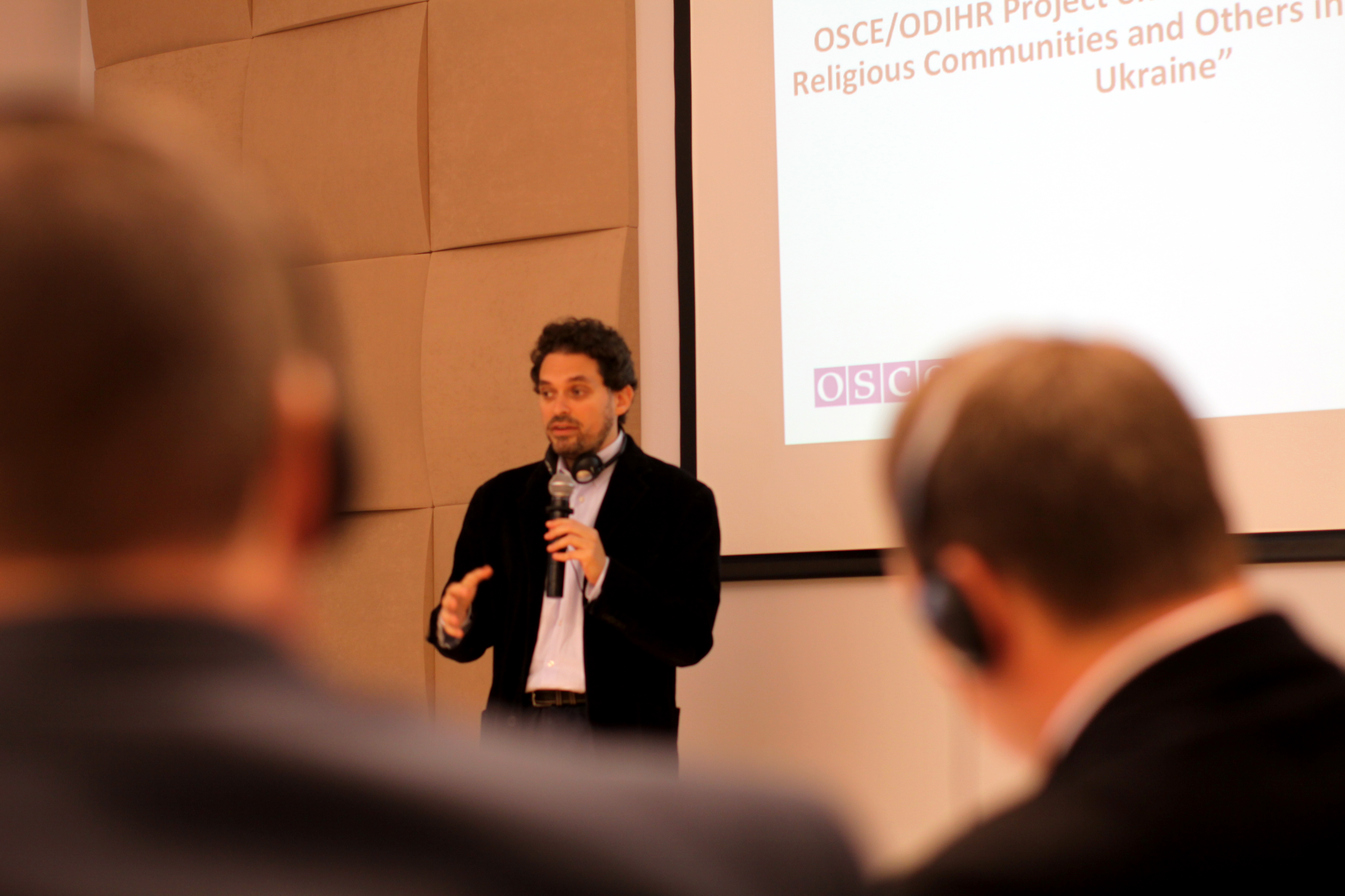 Omer Fisher, Deputy Head of ODIHR’s human rights department, presenting in Warsaw at the study visit by police officers and prosecutors from Ukraine, 19 October 2015