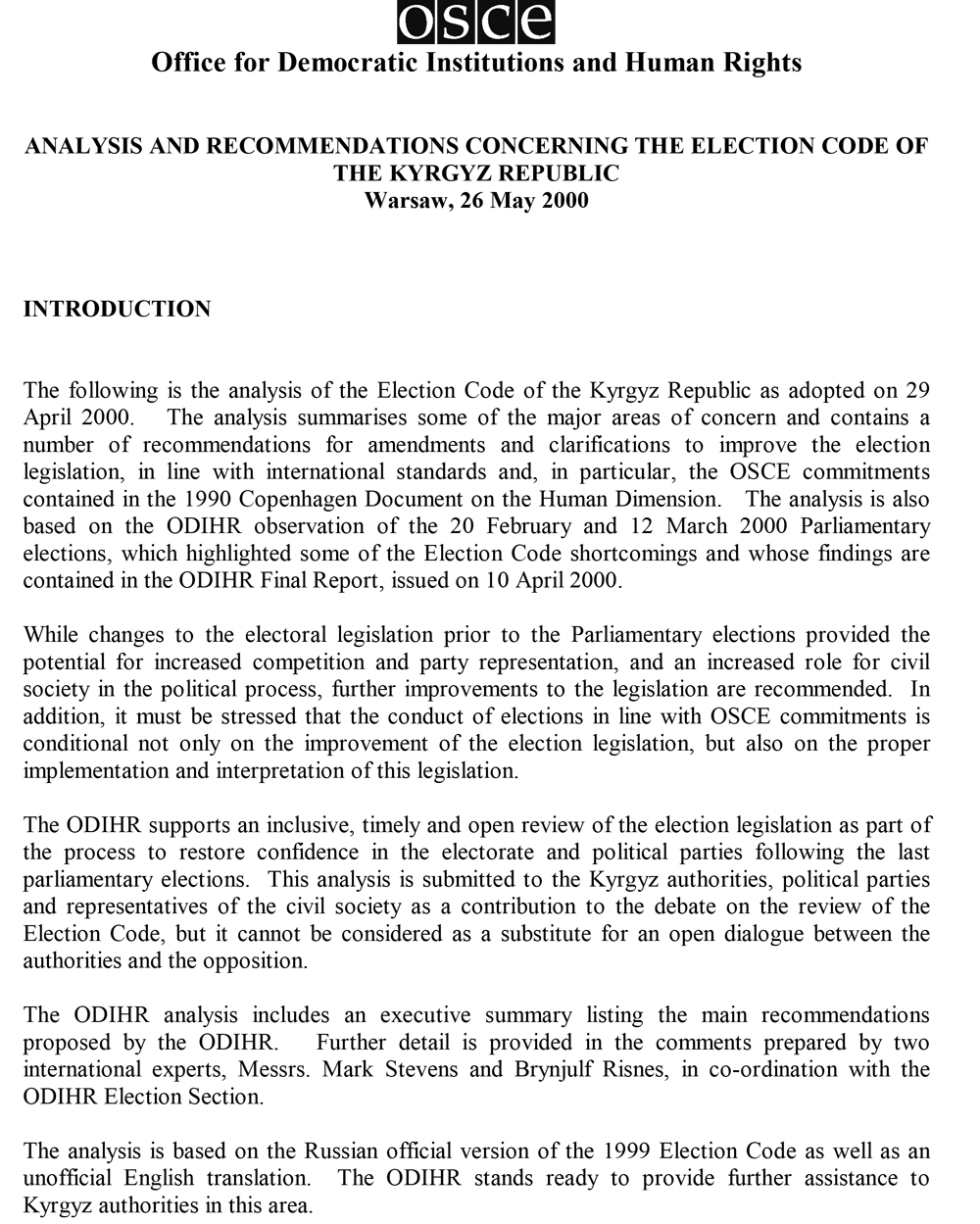 OSCE Office for Democratic Institutions and Human Rights