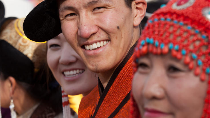 Mongolians in traditional costume in Ulaanbaatar, 10 July 2015