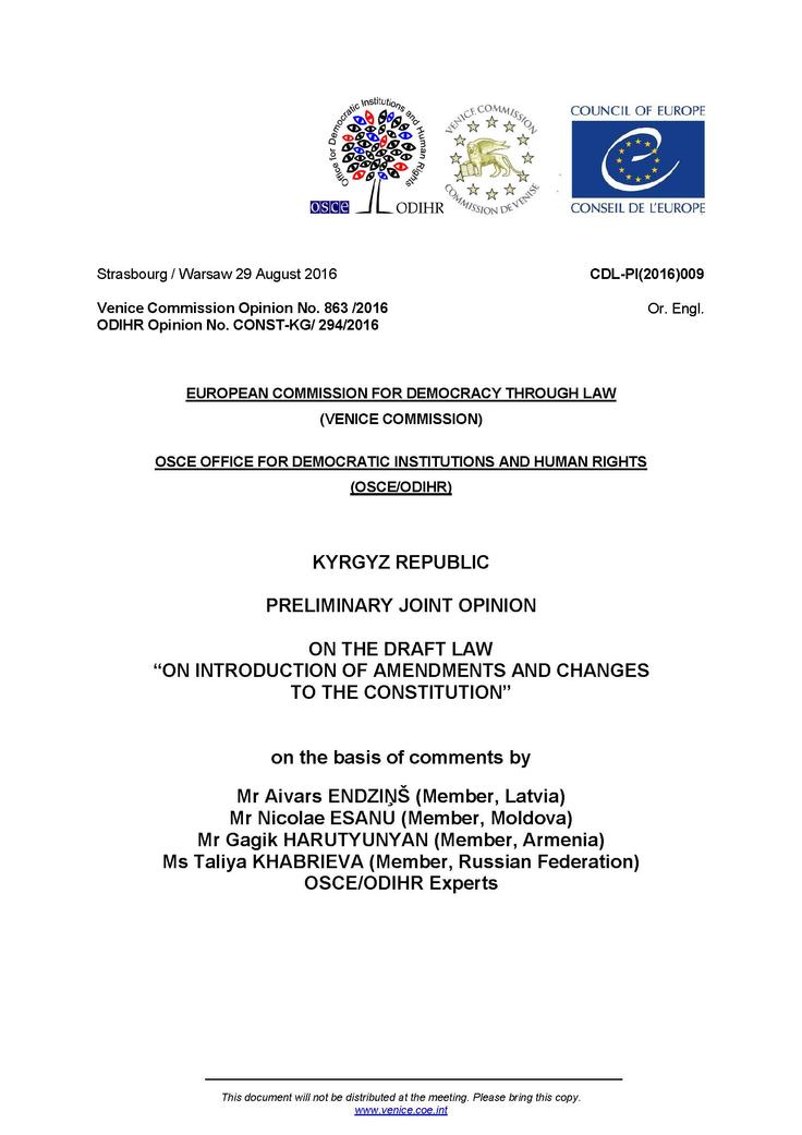 cover for the OSCE/ODIHR-Venice Commission Preliminary Joint Opinion on the Draft Law on Introduction of Changes and Amendments to the Constitution of the Kyrgyz Republic