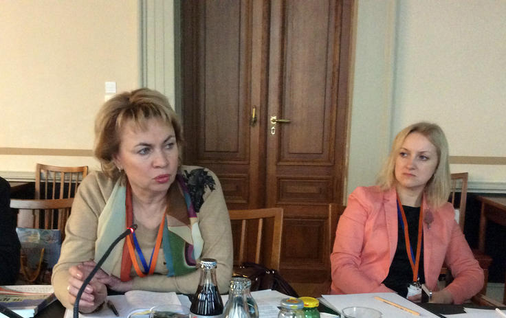 Marianna Shchotkina, Deputy Chairperson of the Council of the Republic at the National Assembly of Belarus, addressing colleagues at the Austrian Parliament during a study visit for Belarusian authorities on gender-sensitive legislation and budgeting organized by ODIHR, 23 November 2016, Vienna.
