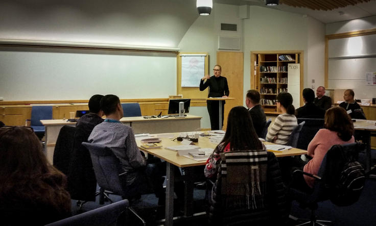 Dijana Tabori, Human Rights Officer at the Mission of Bosnia and Herzegovina to the United Nations, presenting at an OSCE/ODIHR training course for young policy advisors, 5 December 2016, Sando (Sweden).