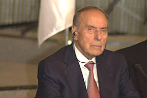 The late President Aliyev of Azerbaijan at the Baku conference on religious freedom and combating terrorism, October 2002.