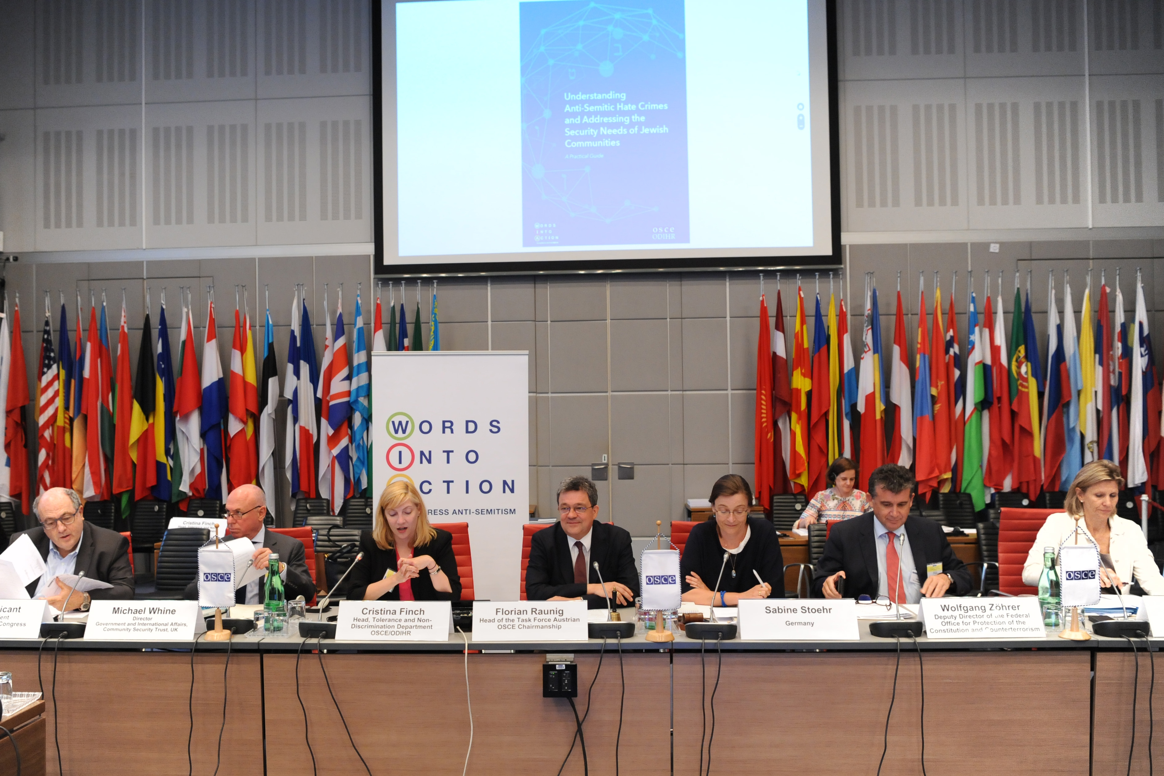 Cristina Finch, Head of the ODIHR Tolerance and Non-Discrimination Department speaking during the OSCE/ODIHR event in Vienna on addressing the security needs of Jewish communities, on 7 July 2017.