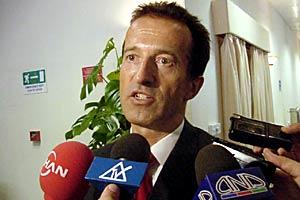 Ambassador Peter Burkhard, Head of the OSCE Office in Baku, speaks to journalists at an OSCE/ODIHR roundtable on border service reform, July 2003.