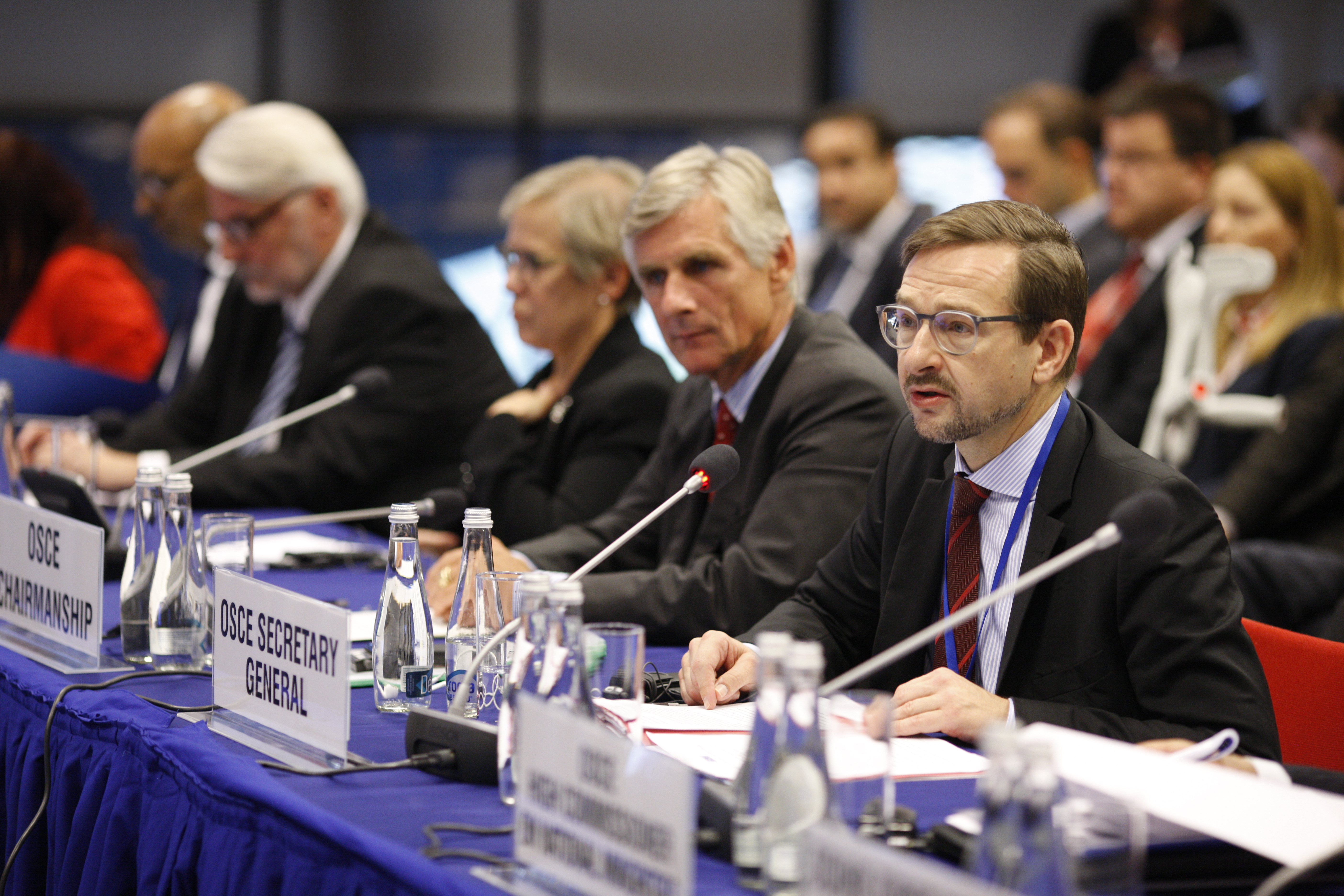 OSCE Secretary General Thomas Greminger delivers his remarks during the Opening Plenary Session of the 2017 Human Dimension Implementation Meeting, 11 September 2017, Warsaw.