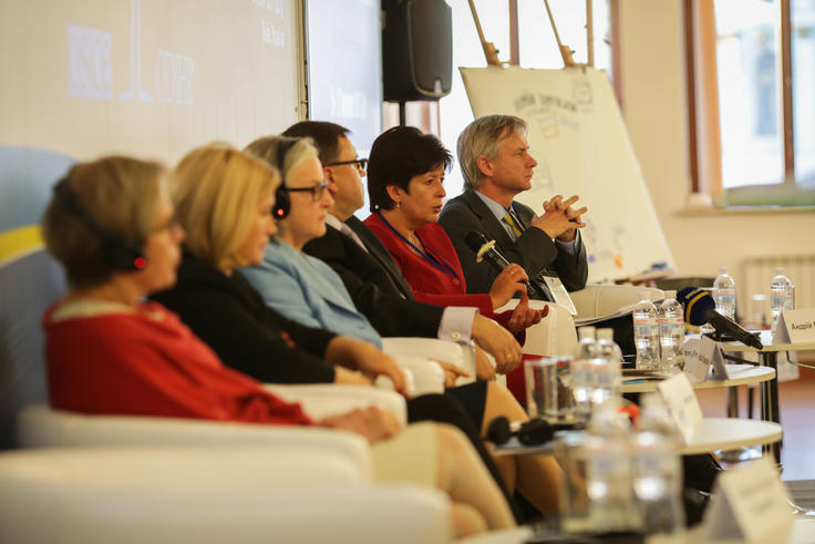 Valeriya Lutkovska, Ukraine's Verkhovna Rada Commissioner for Human Rights, delivering opening remarks at a conference on the human dimension of security in Ukraine organized by the OSCE Office for Democratic Institutions and Human Rights (ODIHR). 26 September 2017, Kyiv.