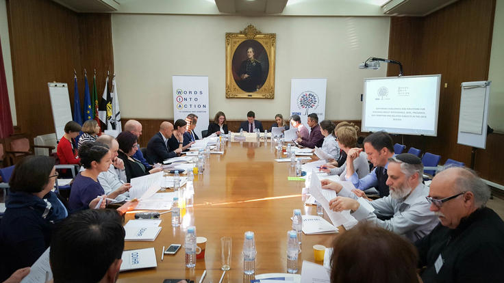 Education professionals from across the OSCE region discuss the development of tools for teachers to address intolerance, bias, prejudice, anti-Semitism and related subjects in the classroom during a meeting organized by the OSCE Office for Democratic Institutions and Human Rights (ODIHR). Lisbon, 21 November 2017.