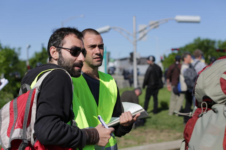 A team of monitors from the OSCE Office for Democratic Institutions and Human Rights (ODIHR) observing a public assembly during the 2018 G7 summit. Quebec City, Canada, 8 June 2018.
