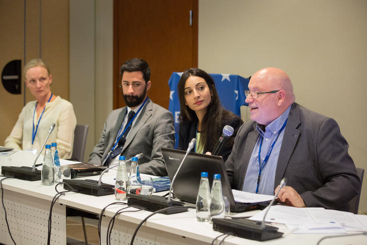Participants in the panel discussion on freedom of speech and expression in the armed forces, which took place in Warsaw on the margins of the 2018 Human Dimension Implementation Meeting. 17 September 2018.