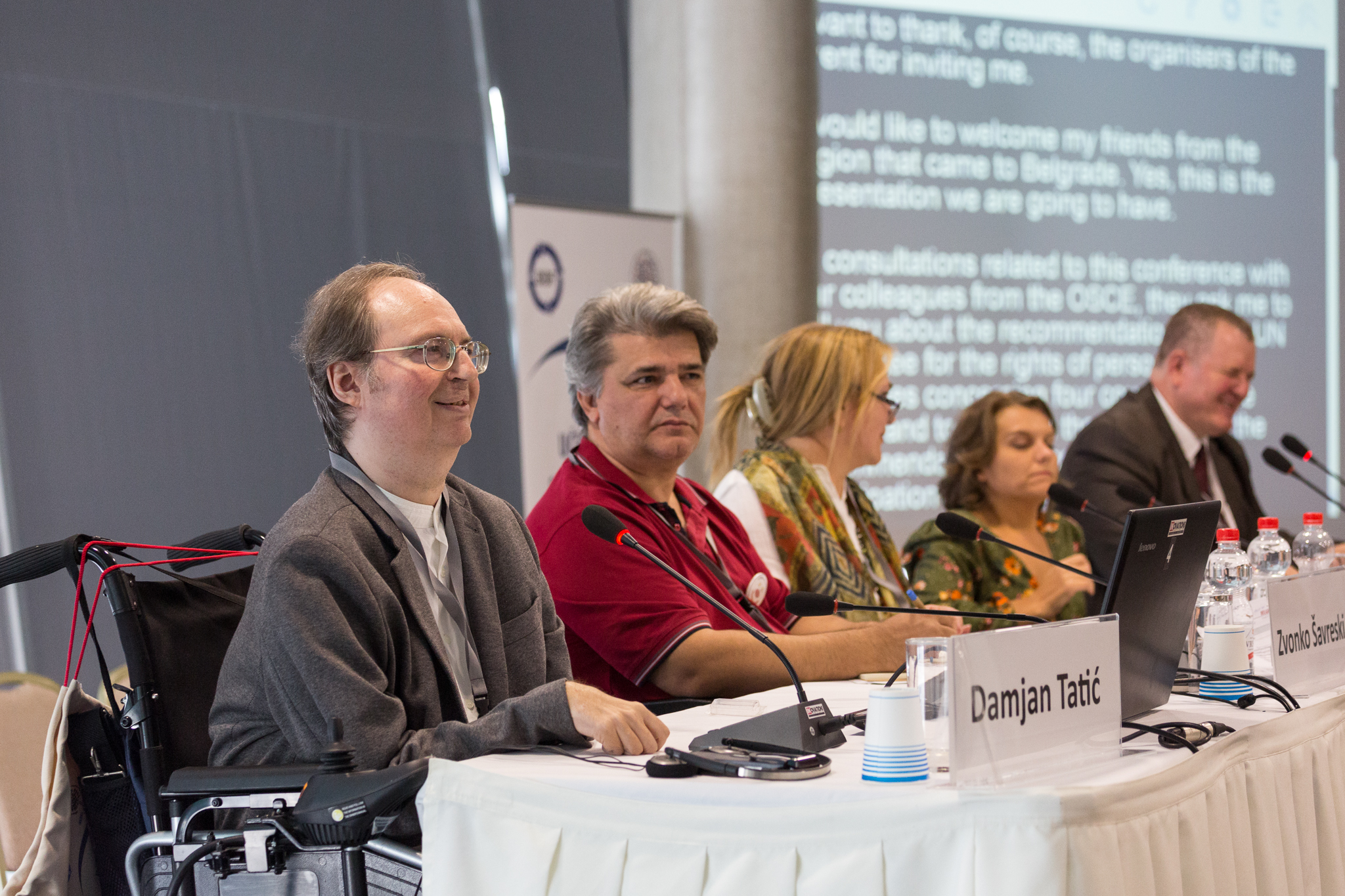 Damjan Tatić, Vice Chairperson of the United Nations Committee on the Rights of Persons with Disabilities, speaking during a conference on enhancing the political and electoral participation of persons with disabilities, co-organized by the OSCE Office for Democratic Institutions and Human Rights (ODIHR) and the Balkans Independent Disability Framework. Belgrade, 16 October 2018.