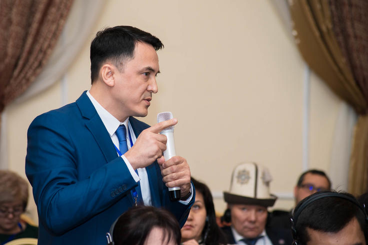Jamshid Turdaliev, defence lawyer and member of the Chamber of Advocates of Uzbekistan, speaking during the Seventh Expert Forum on Criminal Justice for Central Asia in Bishkek. The event, organized by the OSCE Office for Democratic Institutions and Human Rights (ODIHR), brought together some 120 criminal justice experts from across Central Asia. 27 November 2018.