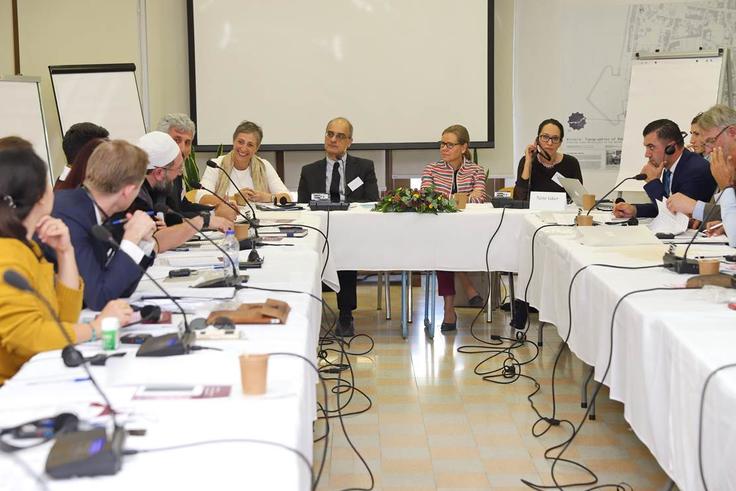 Back row left to right: Salpy Eskidjian, Executive Director of the Office of the Religious Track of the Cyprus Peace Process under the Auspices of the Embassy of Sweden (RTCYPP), Kishan Manocha, Senior Adviser on Freedom of Religion or Belief at the OSCE Office for Democratic Institutions and Human Rights (ODIHR), and Anna Olsson Vrang, Sweden's Ambassador to Cyprus, listening to participants in a training event on freedom of religion or belief organized by ODIHR and RTCYPP. Nicosia, 11 December 2018.