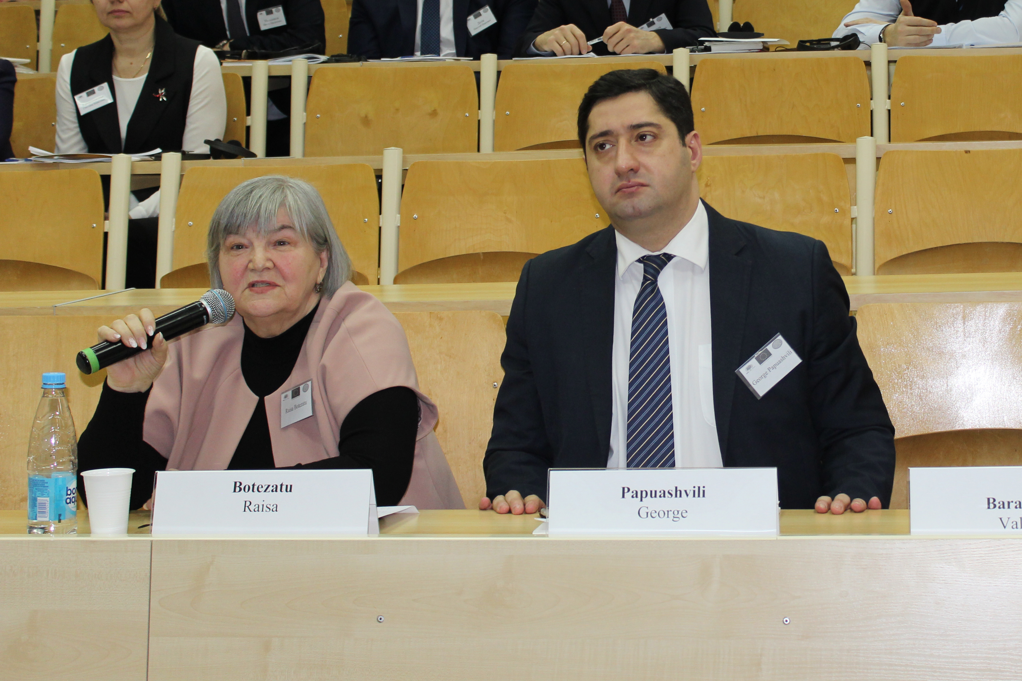 Raisa Botezatu (l), expert with the OSCE Office for Democratic Institutions and Human Rights (ODIHR), and George Papuashvili (r), expert with the EU Delegation to Belarus, participate in a seminar on individualization of criminal sanctions with Belarussian legal professionals in Minsk. 21 March 2019.