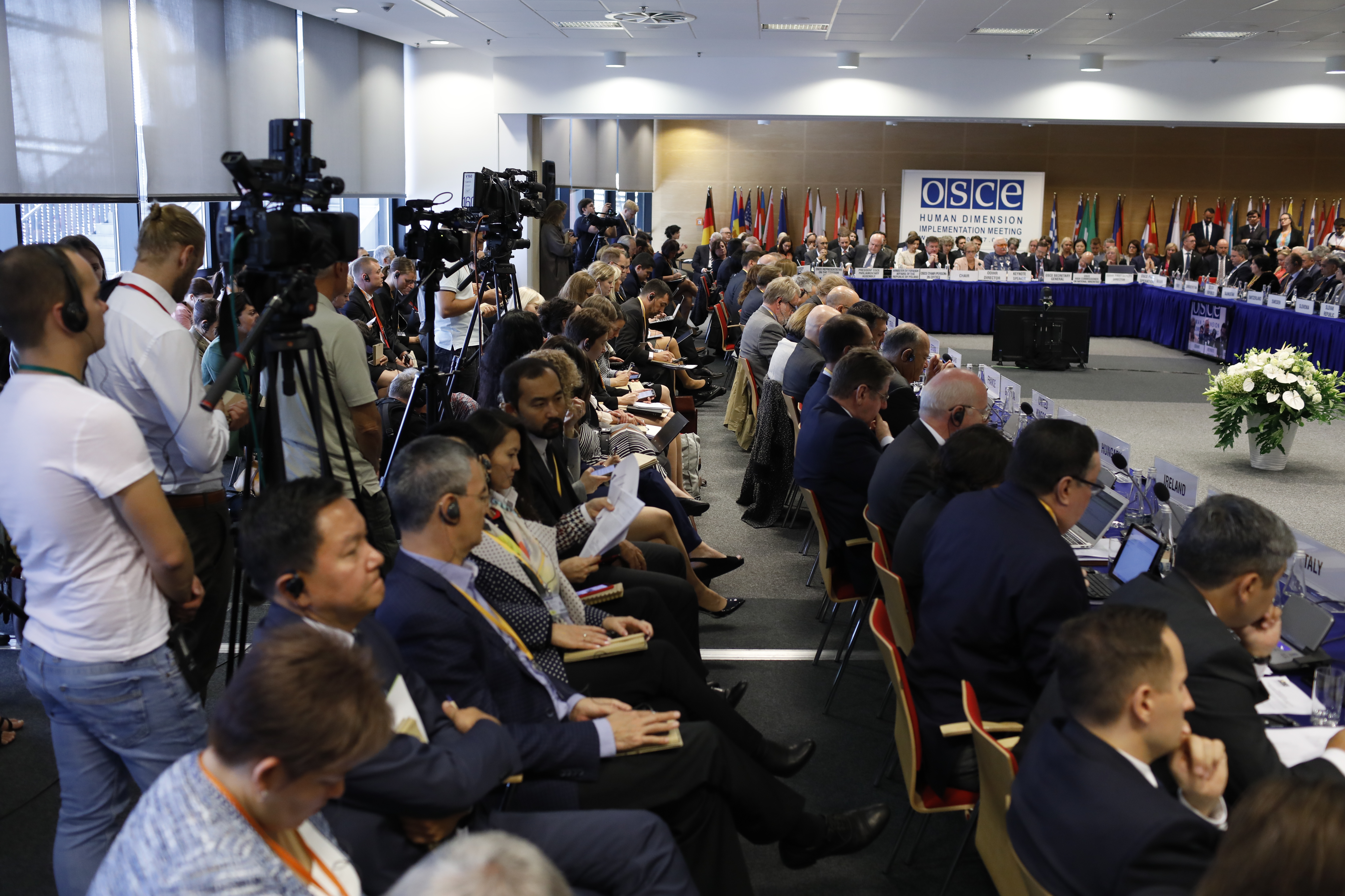 Media representatives at the opening plenary session of the 2019 Human Dimension Implementation Meeting. Warsaw, 16 September 2019.