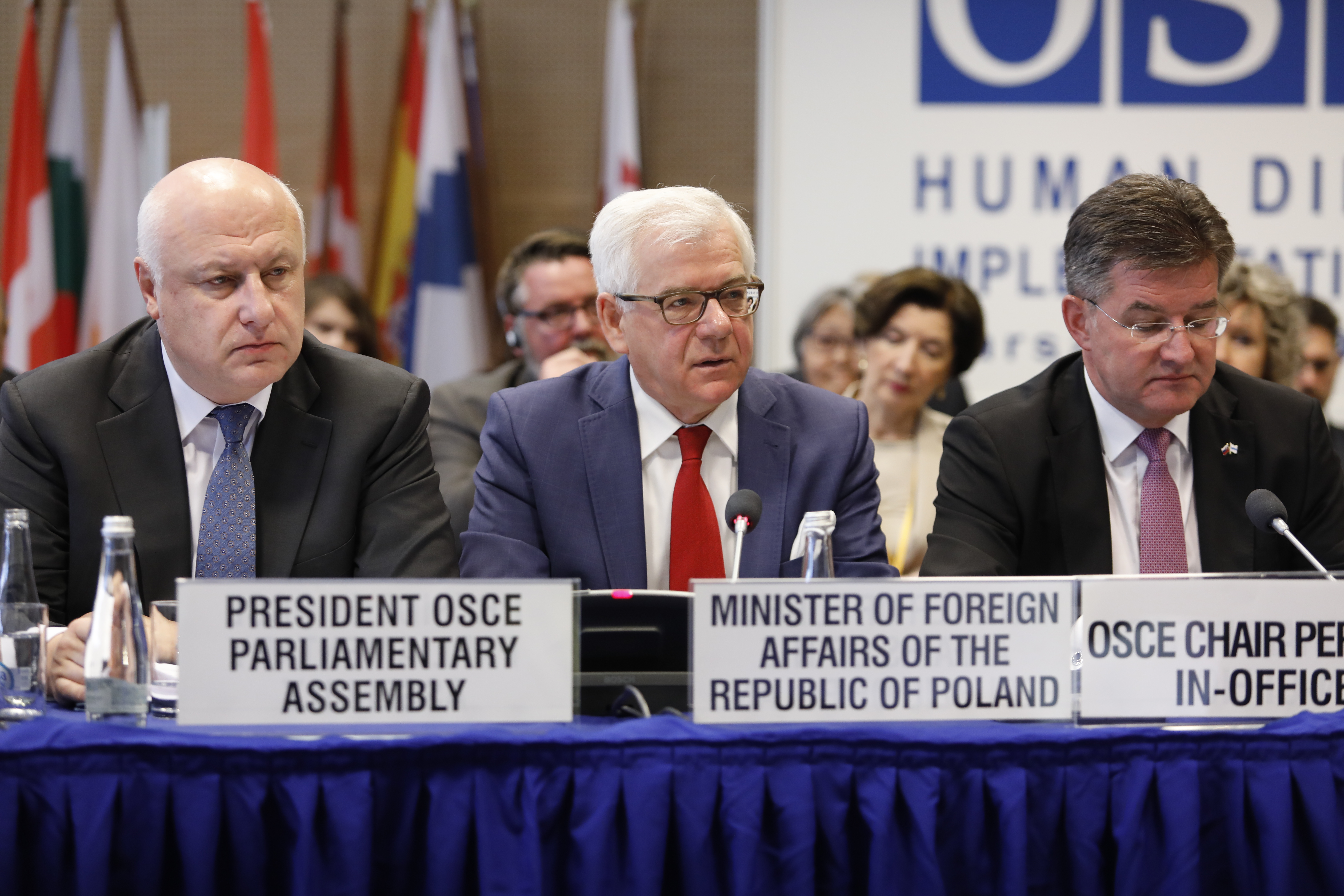 Jacek Czaputowicz, the Polish Foreign Minister, speaking during the opening of the 2019 Human Dimension Implementation Meeting. Warsaw, 16 September 2019.