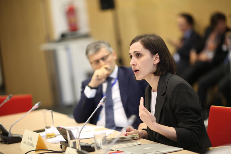 Nino Tsagareishvili, co-director of the Human Rights Center in Tbilisi, speaking at an event on freedom of peaceful assembly organized by the OSCE Office for Democratic Institutions and Human Rights (ODIHR) during the 2019 Human Dimension Implementation Meeting in Warsaw. 19 September 2019.