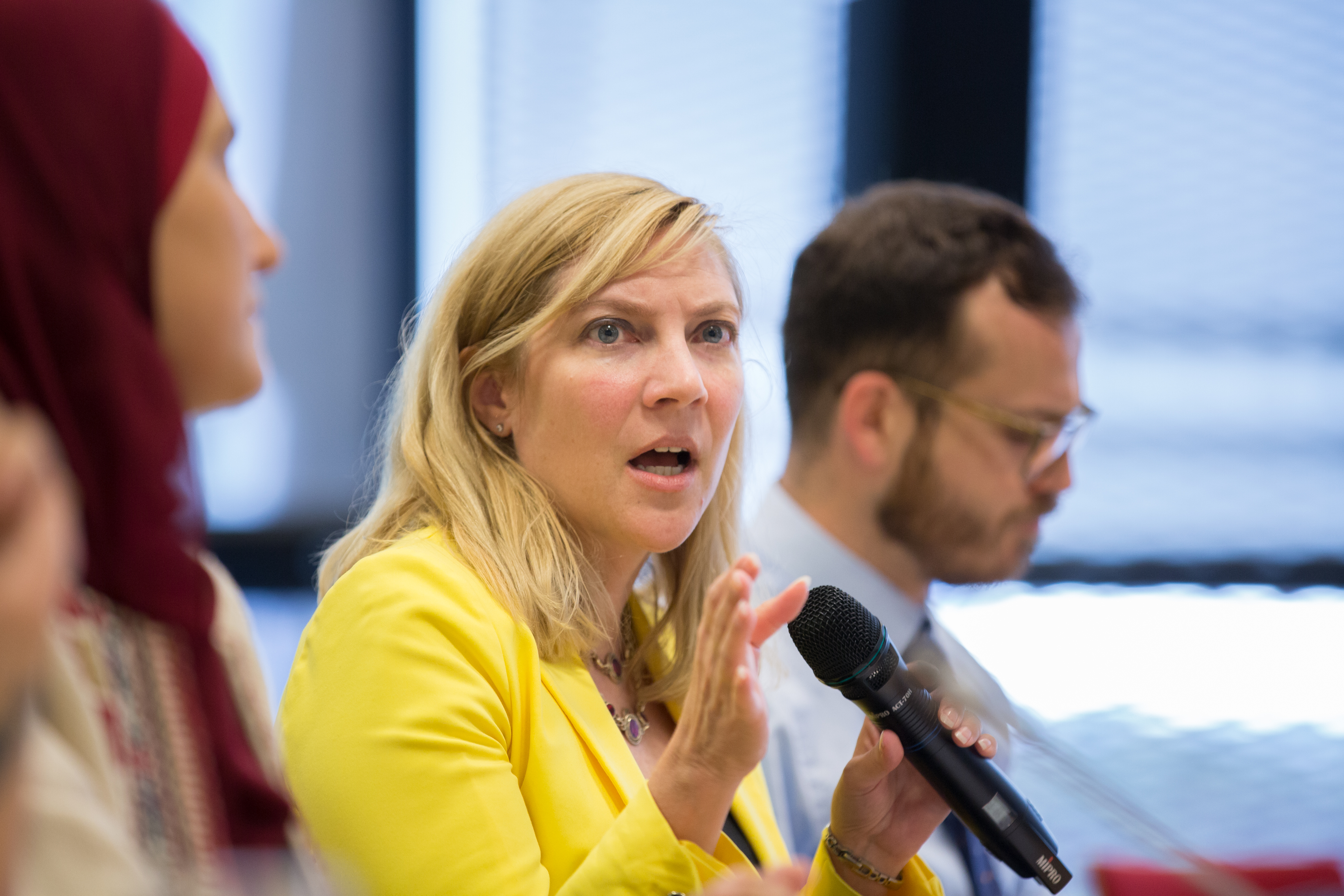 Cristina Finch, Head of the Tolerance and Non-Discrimination Department at the OSCE Office for Democratic Institutions and Human Rights (ODIHR), addressing participants in an ODIHR event on countering hate crime and supporting victims held on the margins of the 2019 Human Dimension Meeting. Warsaw, 25 September 2019.