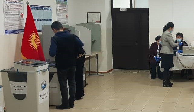 Voters in Bishkek cast their ballots in Kyrgyzstan's early presidential elections.