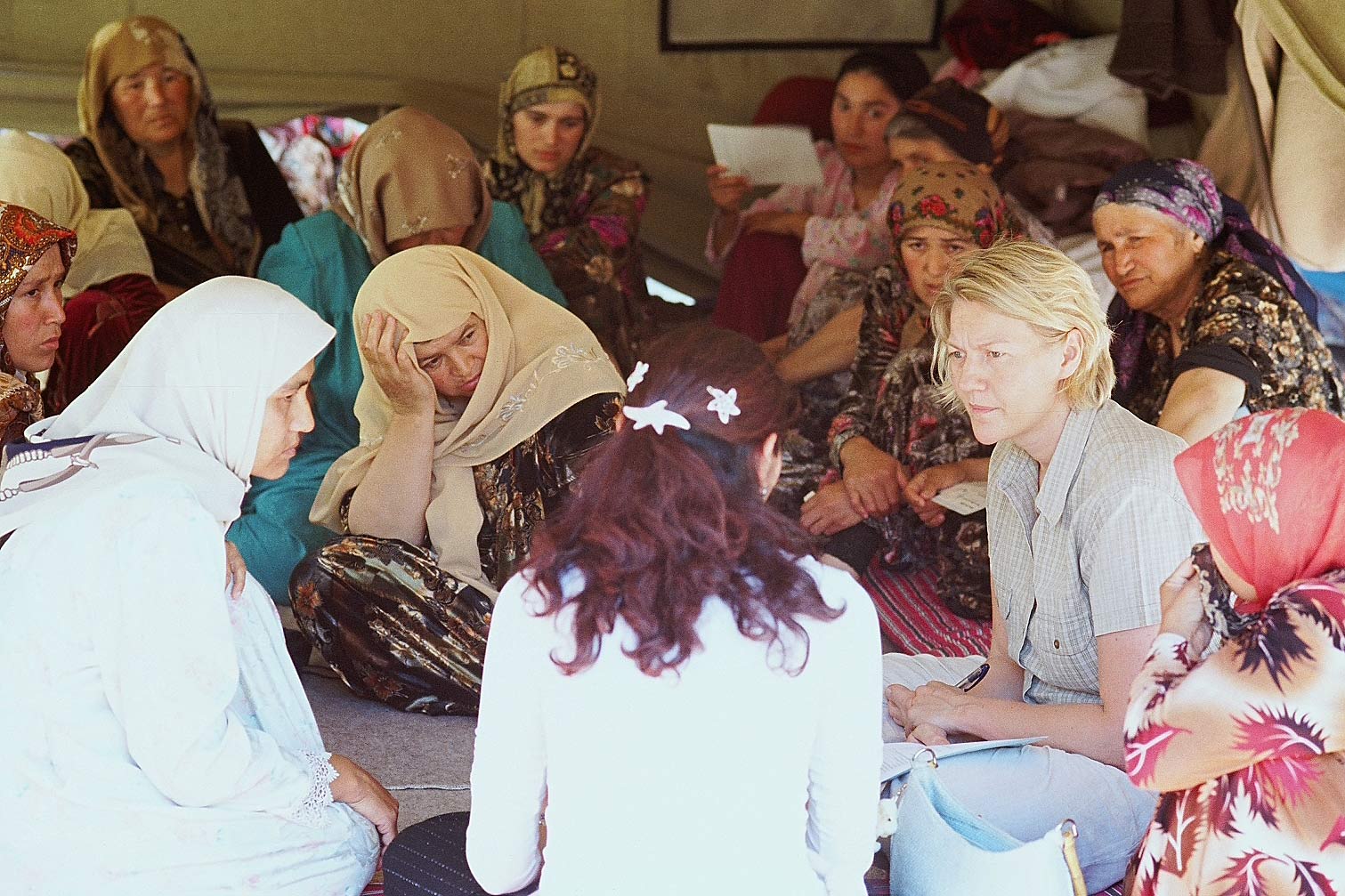 An ODIHR human rights officer listening to Uzbek refugees in Kyrgyzstan following the 13 May 2005 events in Andijan.