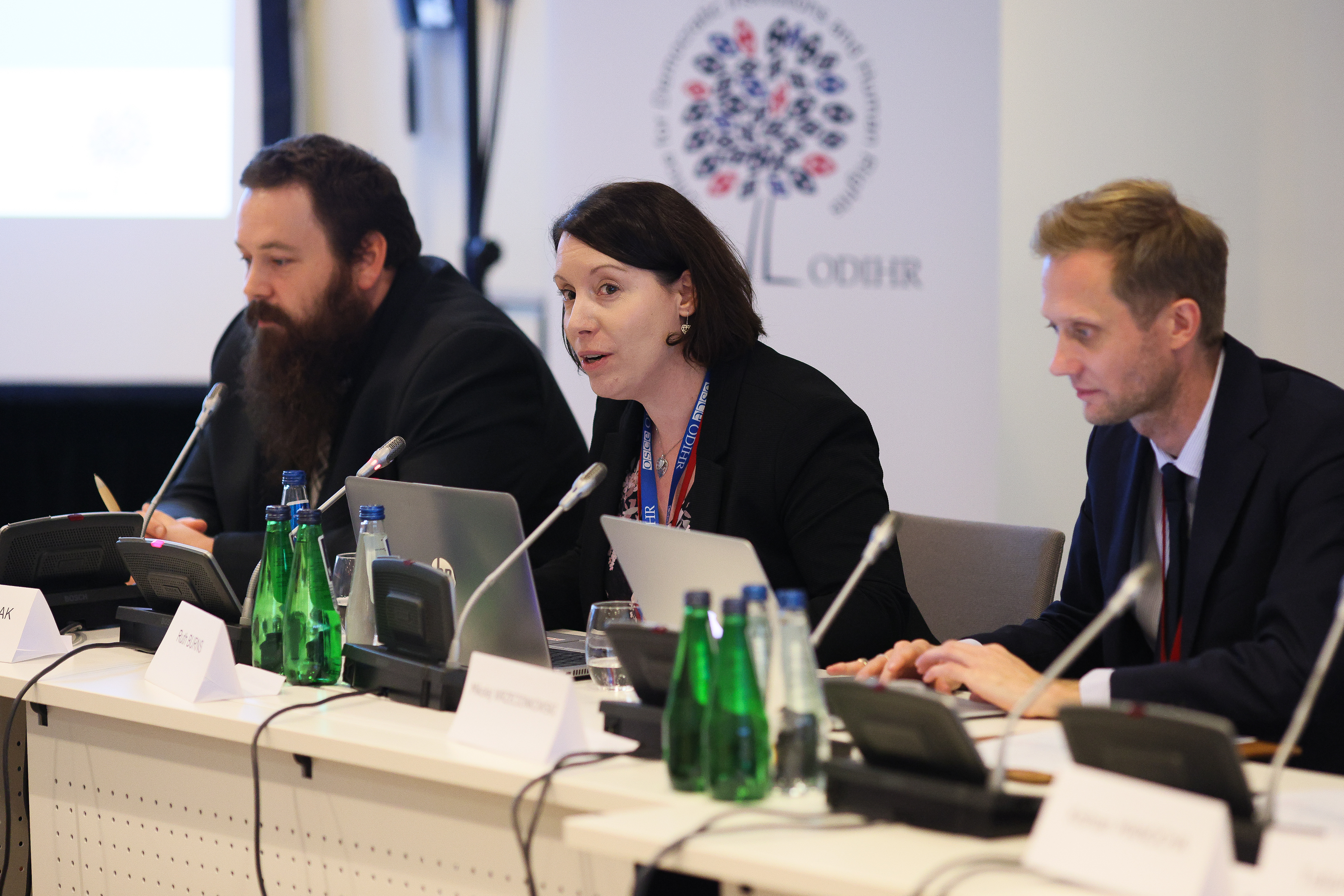 Ruth Burns, ODIHR Assistant Hate Crime Officer, addressing participants in an ODIHR event on addressing hate crime and other forms of intolerance held on the margins of the Warsaw Human Dimension Conference. 29 September 2022.
