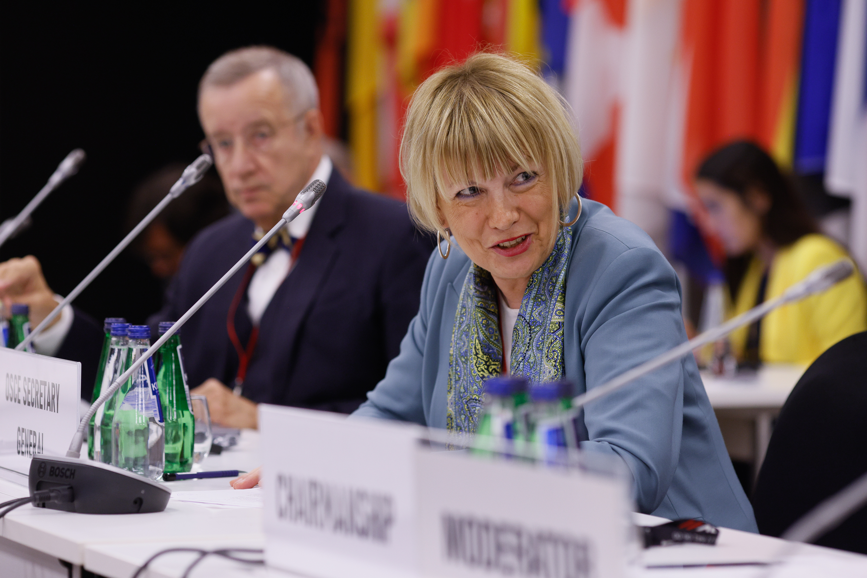 OSCE Secretary General Helga Schmid speaks at the opening plenary of the Warsaw Human Dimension Conference. 26 September 2022.