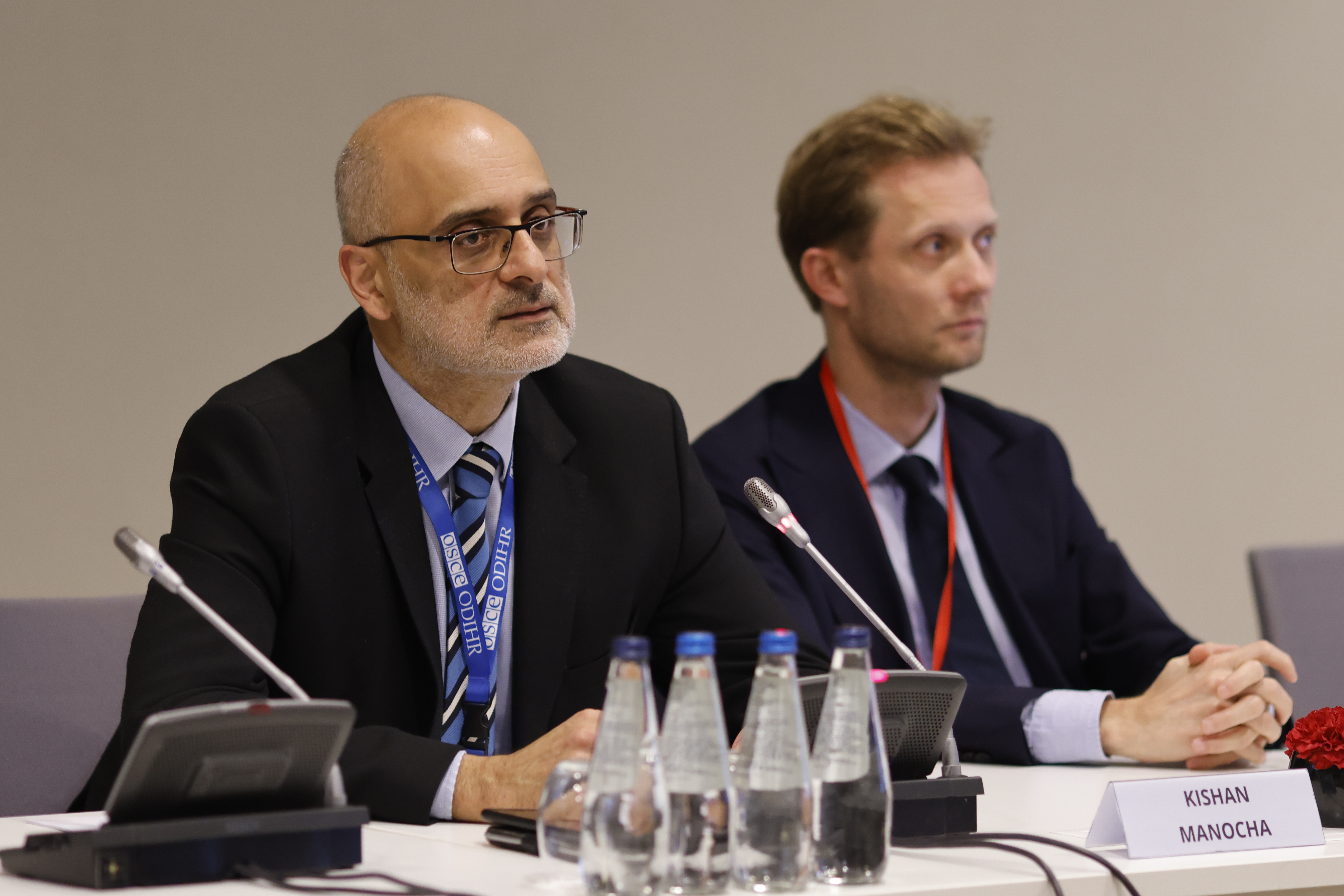 Kishan Manocha, Head of the ODIHR Tolerance and Non-Discrimination department, addressing participants in an ODIHR event on addressing online hate in the age of artificial intelligence that took place at the margins of the 2023 Warsaw Human Dimension Conference. 5 October 2023.