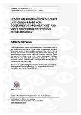 Kyrgyz Republic: Urgent Interim Opinion on the Draft Law “On Non-profit Non-governmental Organizations" and Draft Amendments on “Foreign Representatives”