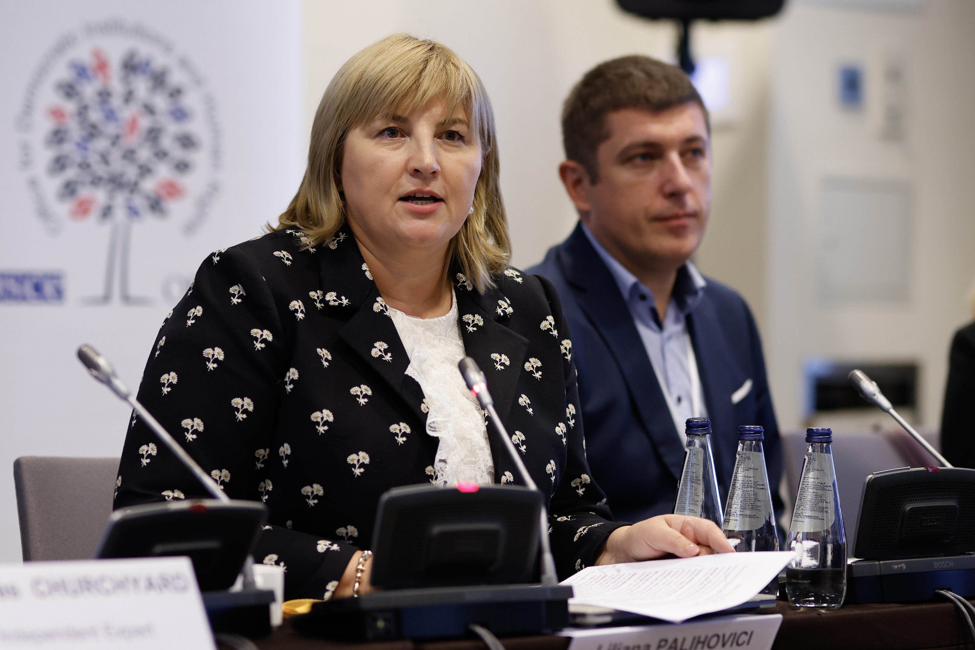 Liliana Palihovici, Special Representative of the OSCE Chair-in-Office on Gender and Dr Wojciech Brzozowski, Deputy Ombudsman of the Republic of Poland during the Warsaw Human Dimension Conference 2024 Side event: Engaging Men to support Gender Equality; From Awareness to Action, Warsaw, 10 October 2024.