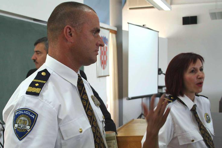 Daniela Petkovic, the chief trainer of nine Croatian police-trainers, with one of the participants in the first OSCE training course on combating hate crime in Croatia, 30 June 2006.