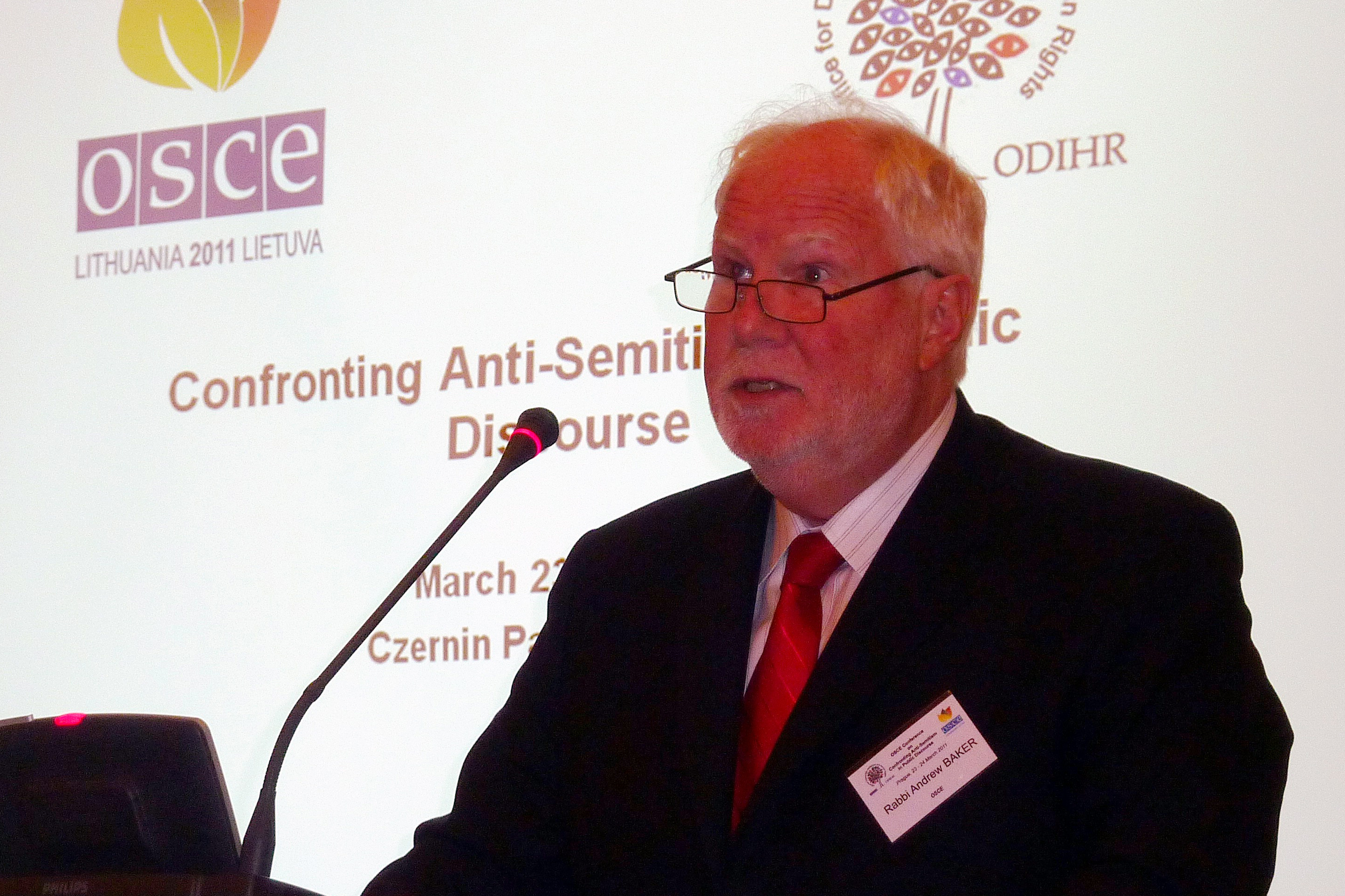 Rabbi Andrew Baker, Personal Representative of the Chairperson-in-Office on Combating Anti-Semitism, speaks at the OSCE meeting on Confronting Anti-Semitism in Public Discourse, Prague, 23 March 2011.